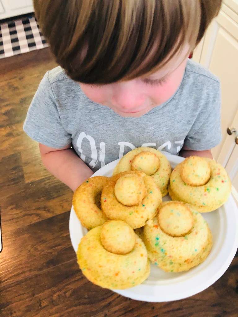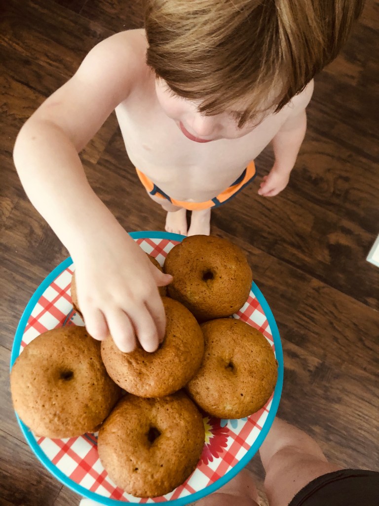 My two favorite pans lately have been my donut pan and my cake pop or donut holes pan, they make eating healthy foods so much more fun and are great for creating fun treats – I’ll share my sons 3rd birthday donuts with you below as well! Grab my donut pan here and the cake pop/donut hole pan here.