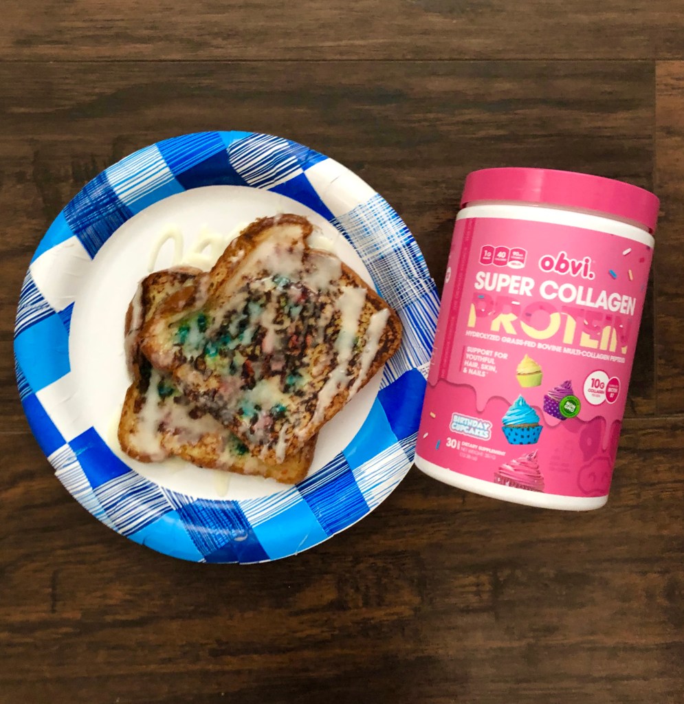 - 1 scoop birthday cake Obvi Super Collagen Protein Powder