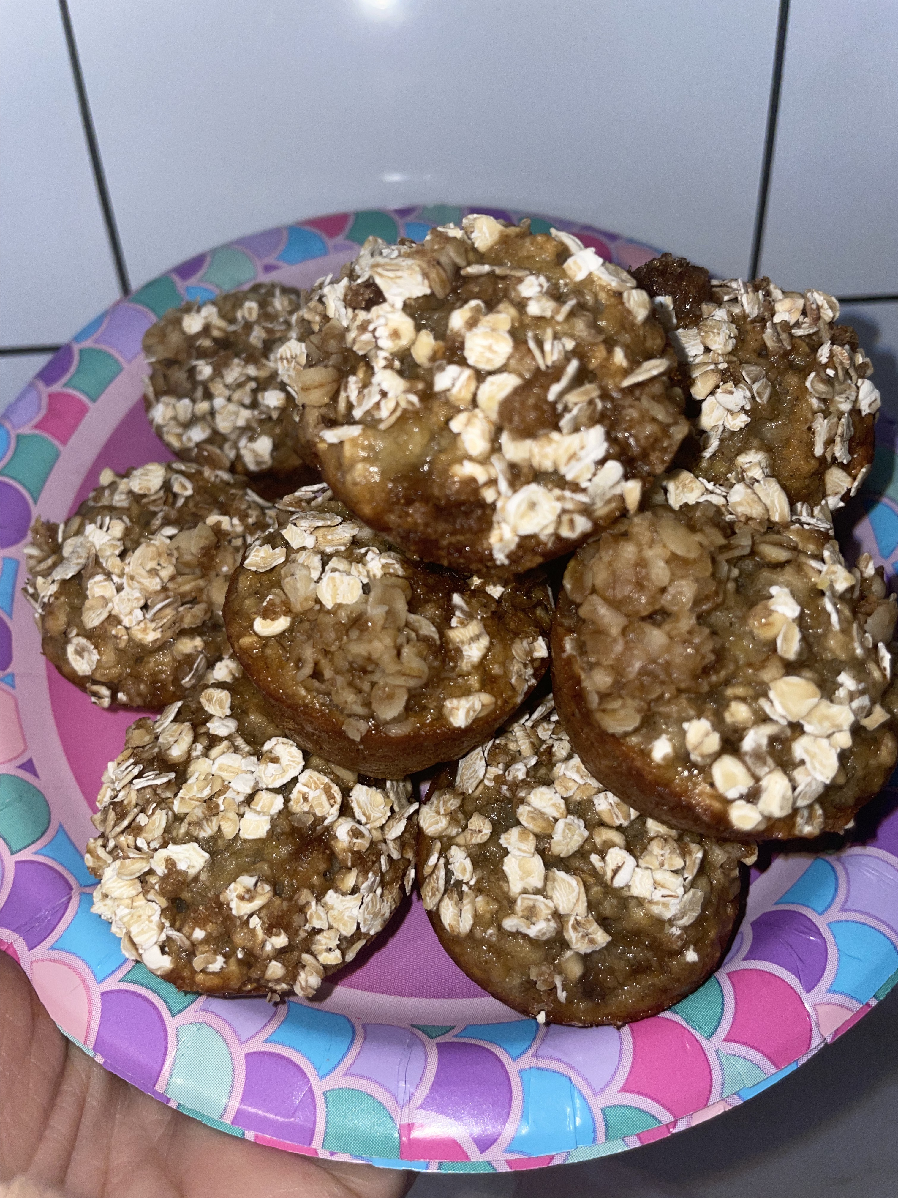 Spray mini muffin pan with olive oil spray and drop one tablespoon of mix into each. This is my absolute favorite scoop that I use for cookies, pancakes, muffins you name it! Top each muffin with the topping mixture and bake for 15 minutes.
